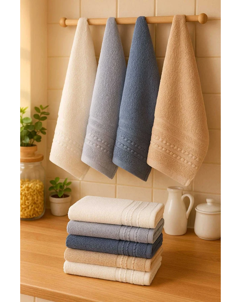6’lı mutfak havlusu seti; 30x50 cm ölçülerindeki ideal boyutu, yumuşak dokusu ve yüksek emiciliği ile mutfağınızın vazgeçilmez yardımcısı olacak.