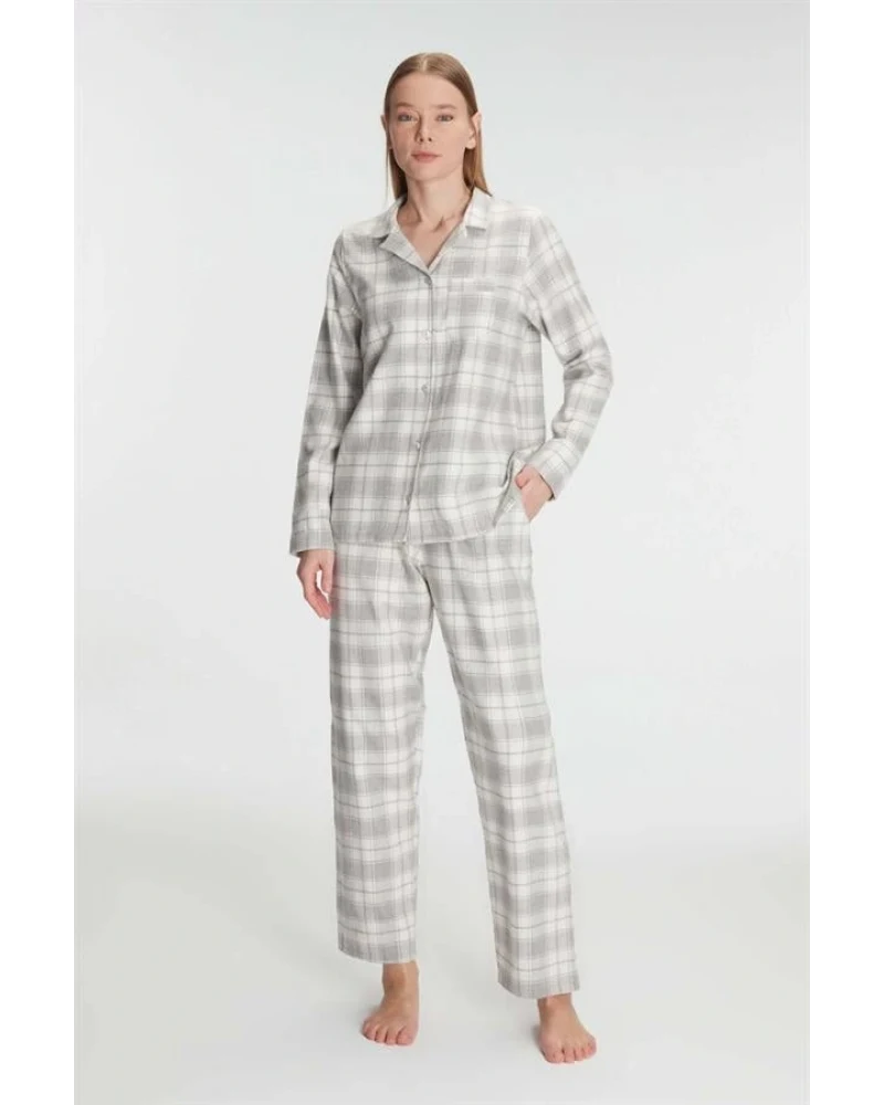 Anıl Kare Desenli Pamuklu Gömlek Pijama Takımı
