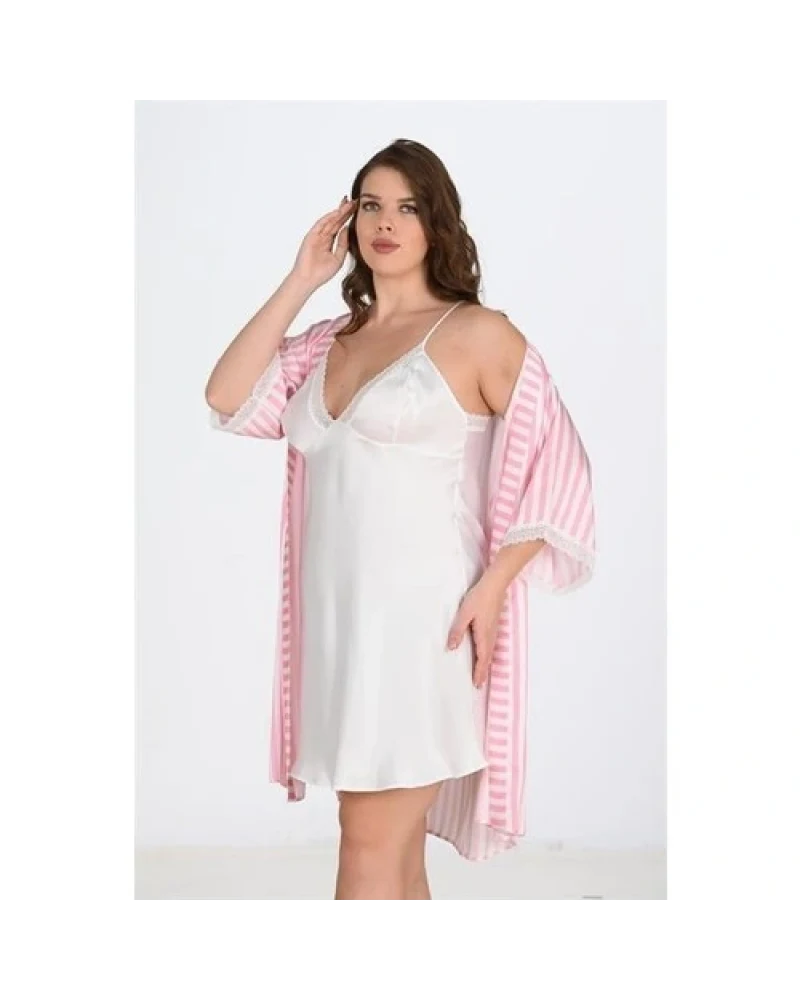 Arias Closet 2'li Beyaz-Pembe Sabahlık Takımı Bigsize 6210