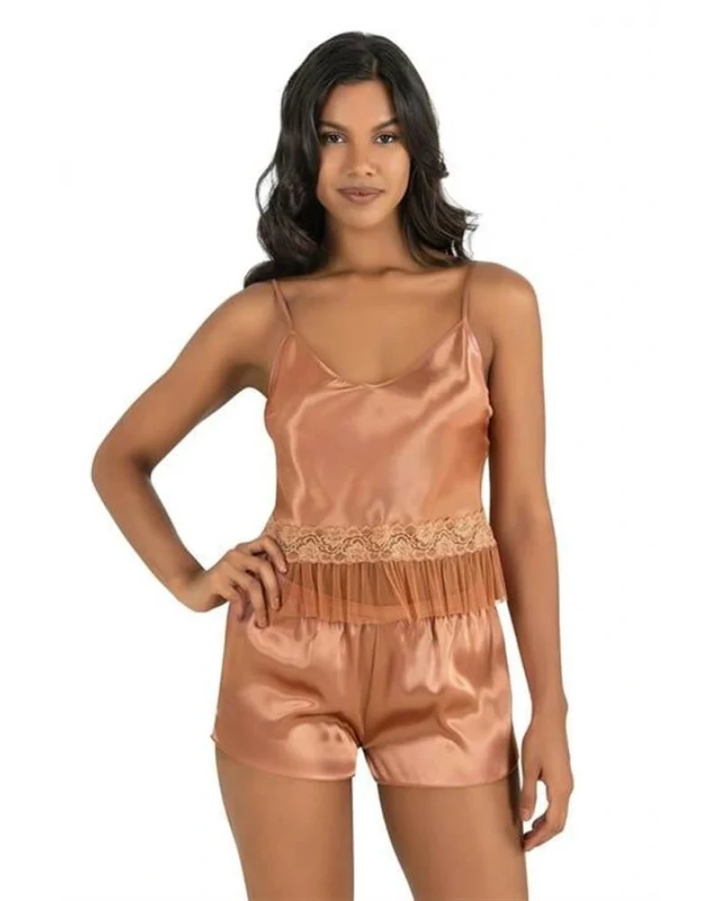 Aria's Closet Bakır Saten Şort Takımı 9209