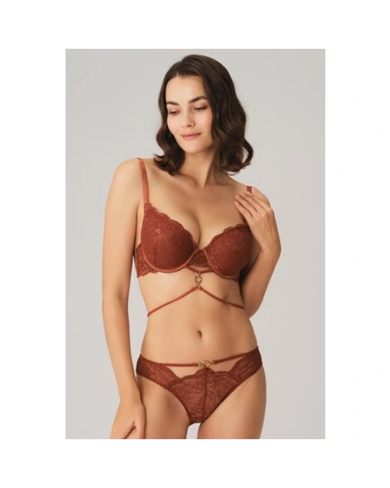 Arias Closet Balenli Destekli Dolgulu Göbek Detaylı Dantelli Sütyen ve Slip Takım