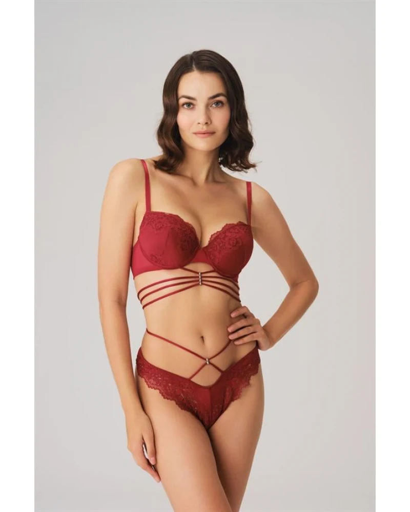 Arias Closet Balenli Destekli Dolgulu Göbek Detaylı Dantelli Sütyen ve String Takım
