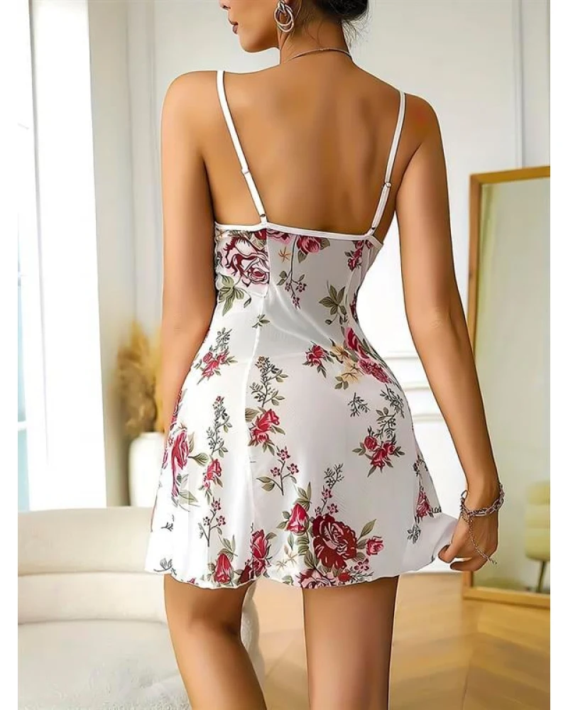 Arias Closet Beyaz Çiçek Desenli Tül Mini Gecelik