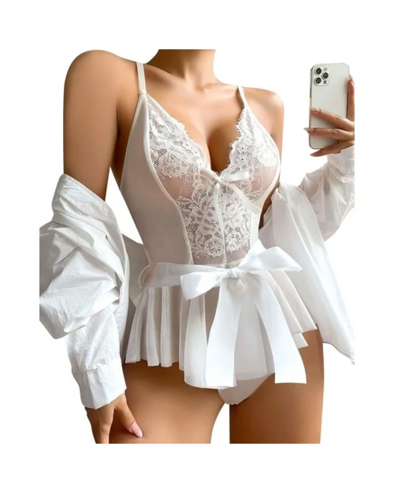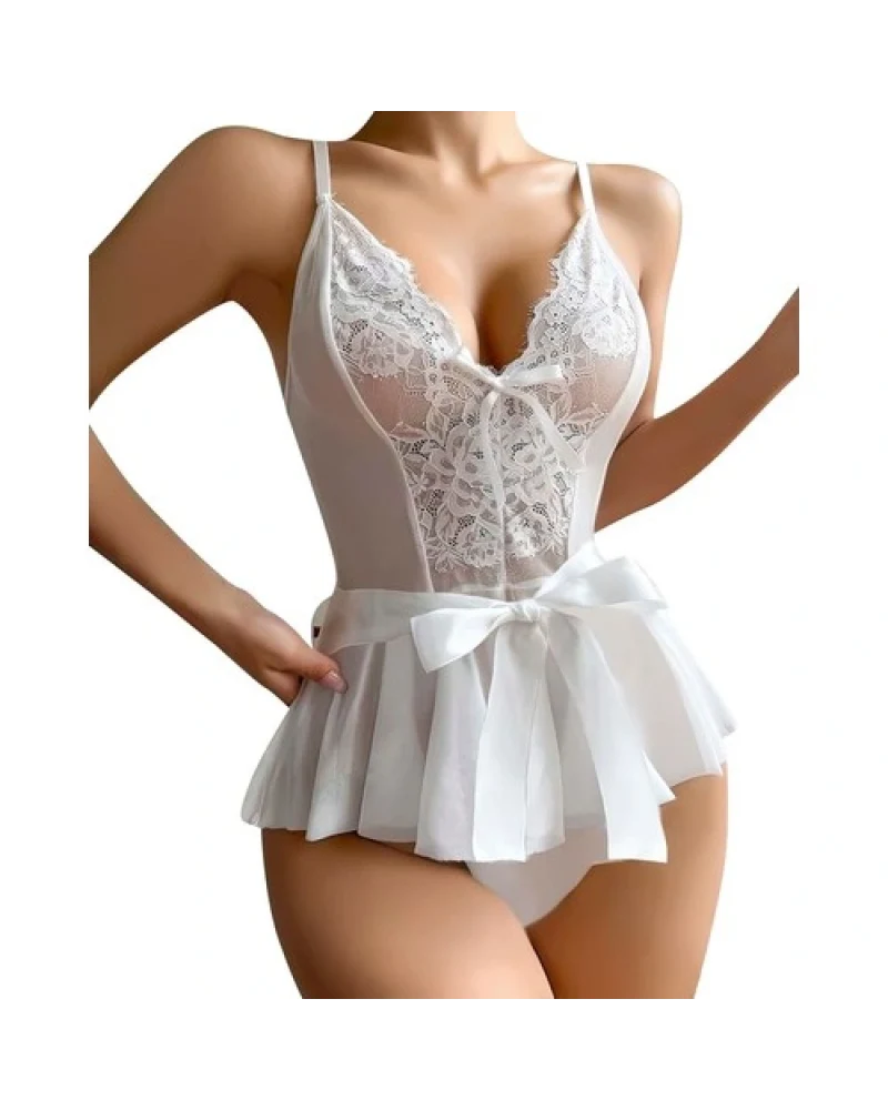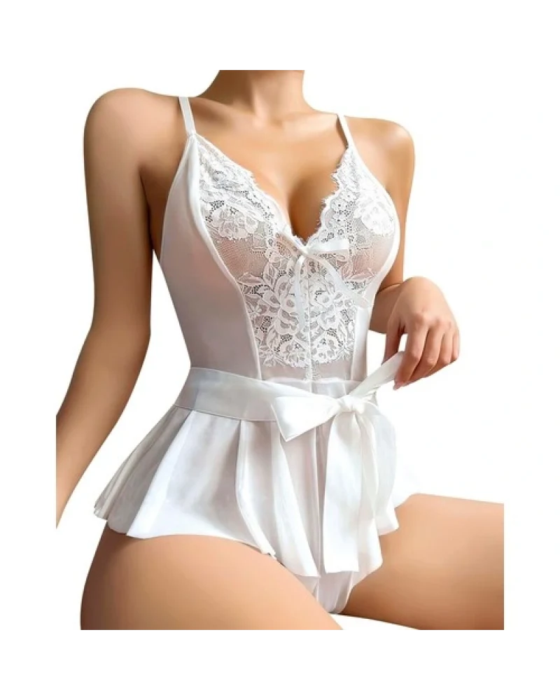 Arias Closet Beyaz Dantel Işlemeli Kurdelalı Fantezi Tül Babydoll