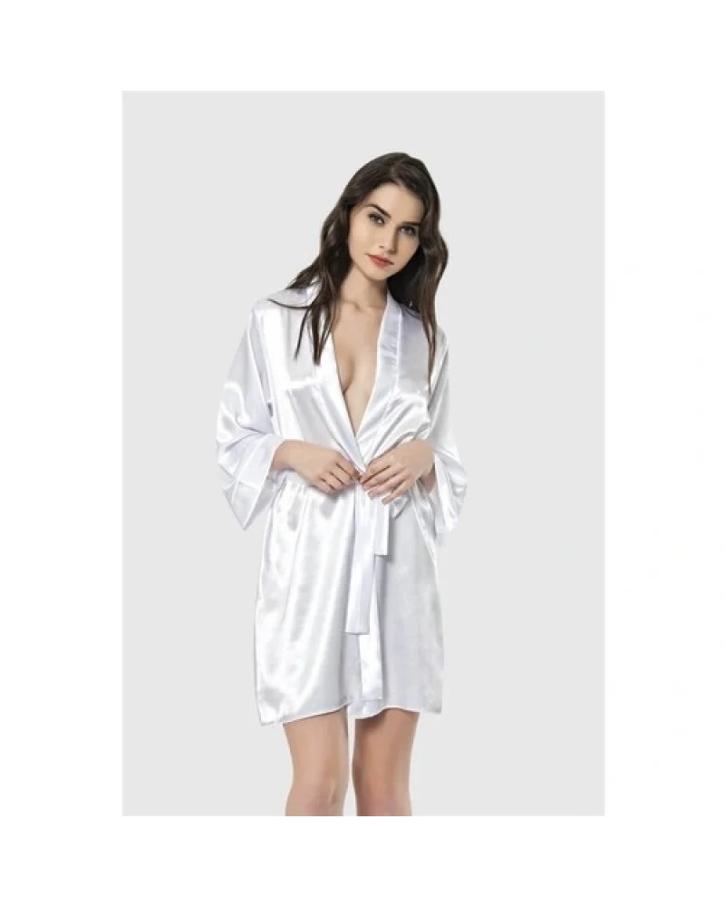 Arias Closet Beyaz Kısa Saten Sabahlık