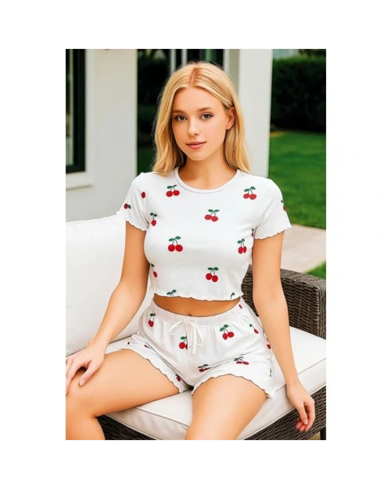 Arias Closet Beyaz Üstüne Kiraz Desenli Şortlu Pijama Takımı