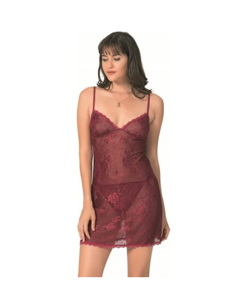 Arias Closet Bordo Kısa Jakarlı Gecelik