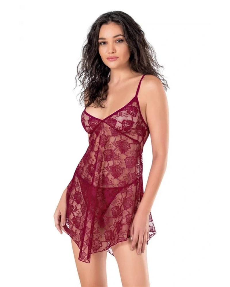 Aria's Closet Bordo Kısa Tül Gecelik 4115