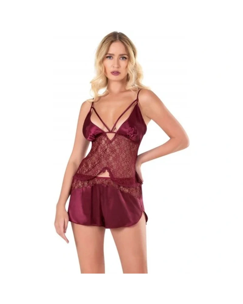Arias Closet Bordo Saten Babydoll Şort Takımı