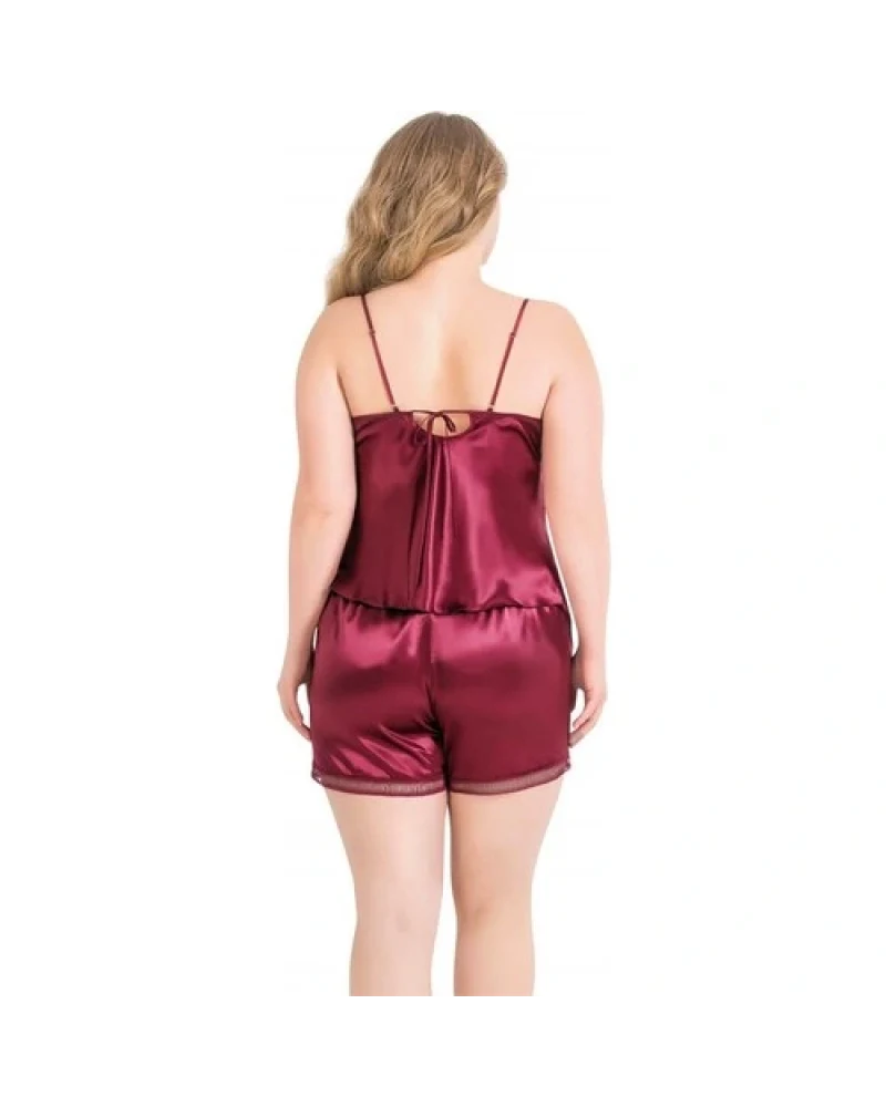 Arias Closet Büyük Beden Bordo Saten Babydoll Şort Takımı