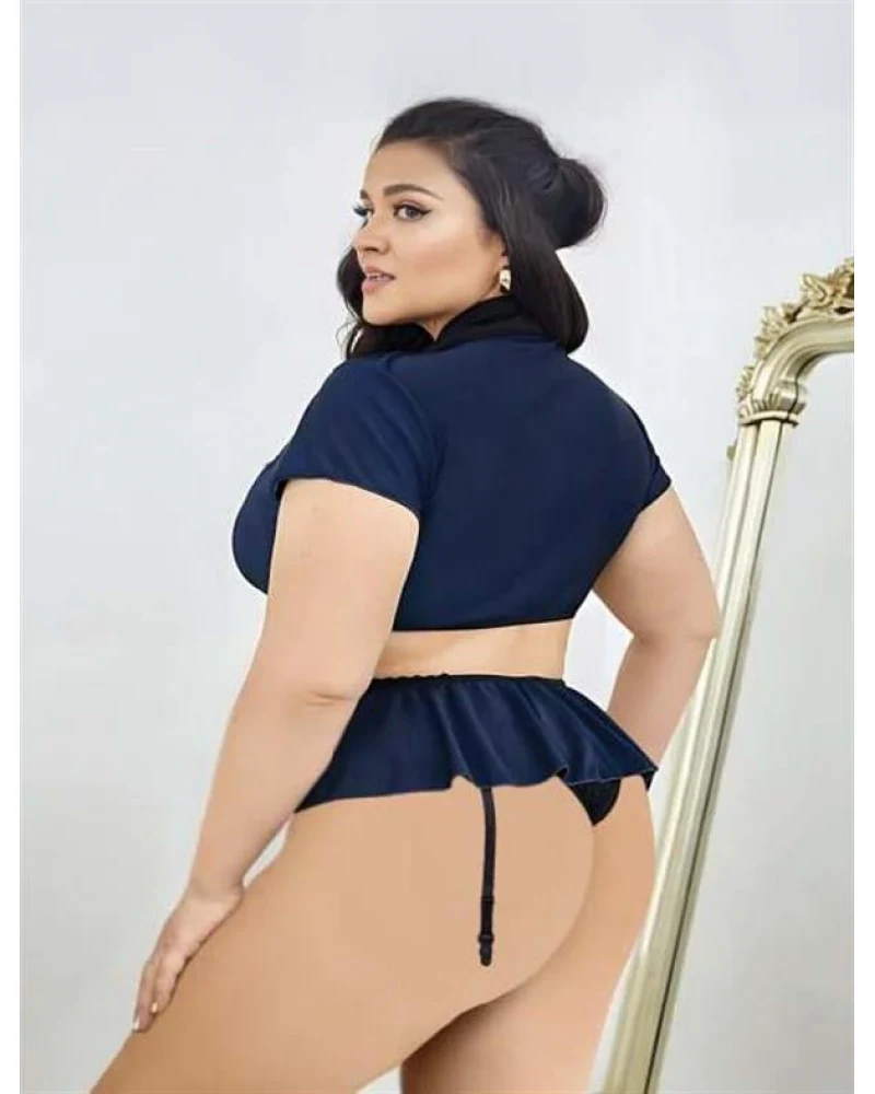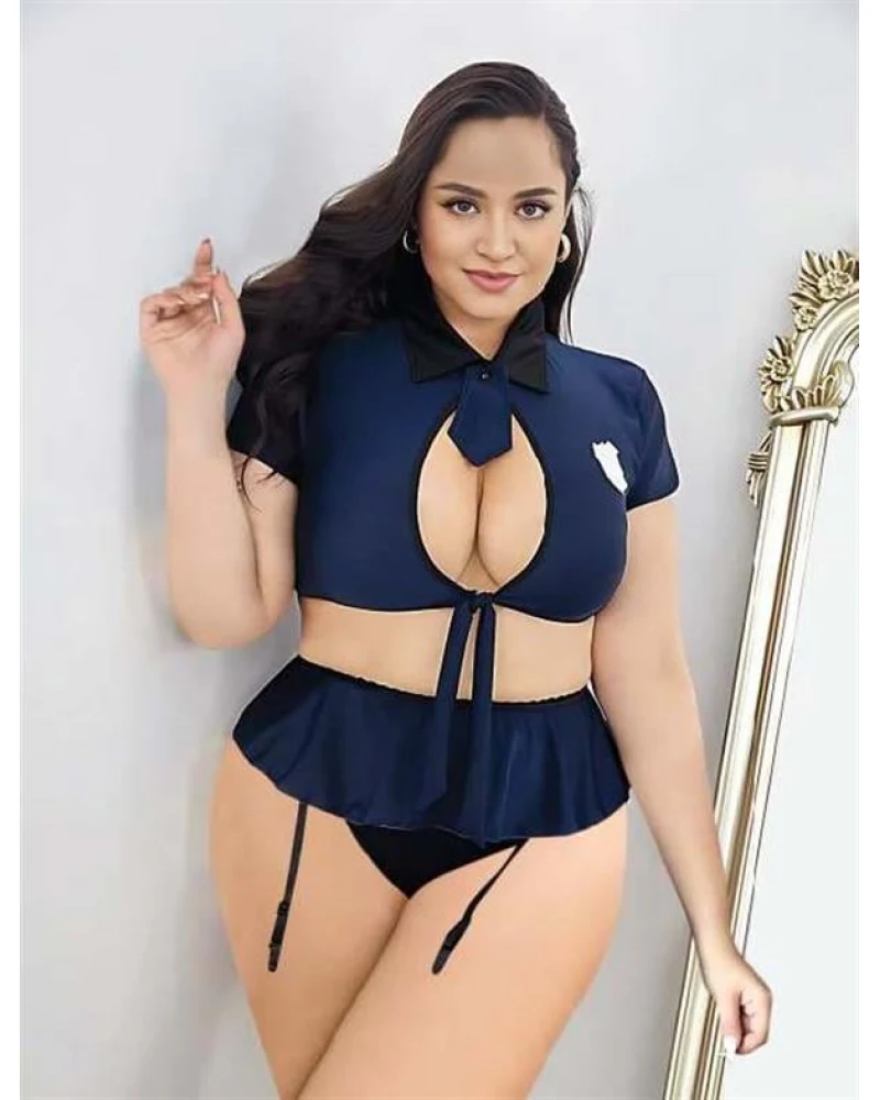 Arias Closet Büyük Beden Lacivert Göğüs Detay Büstiyerli Kravatlı Mini Etekli Fantezi Polis Kostümü