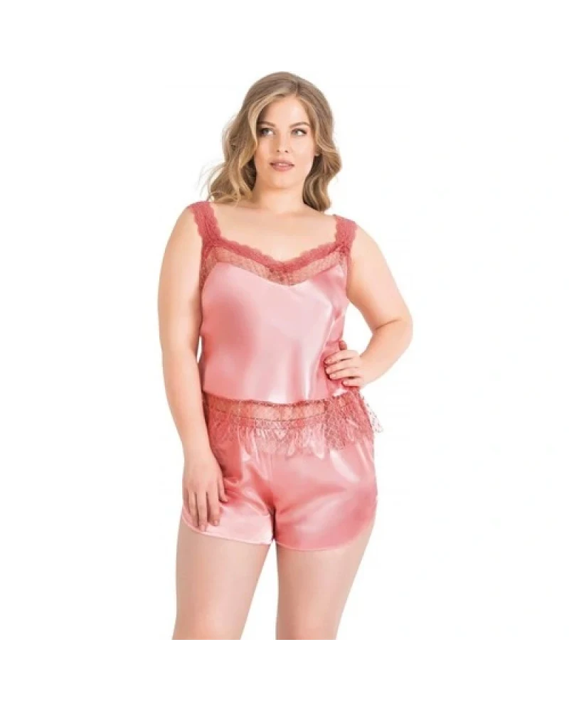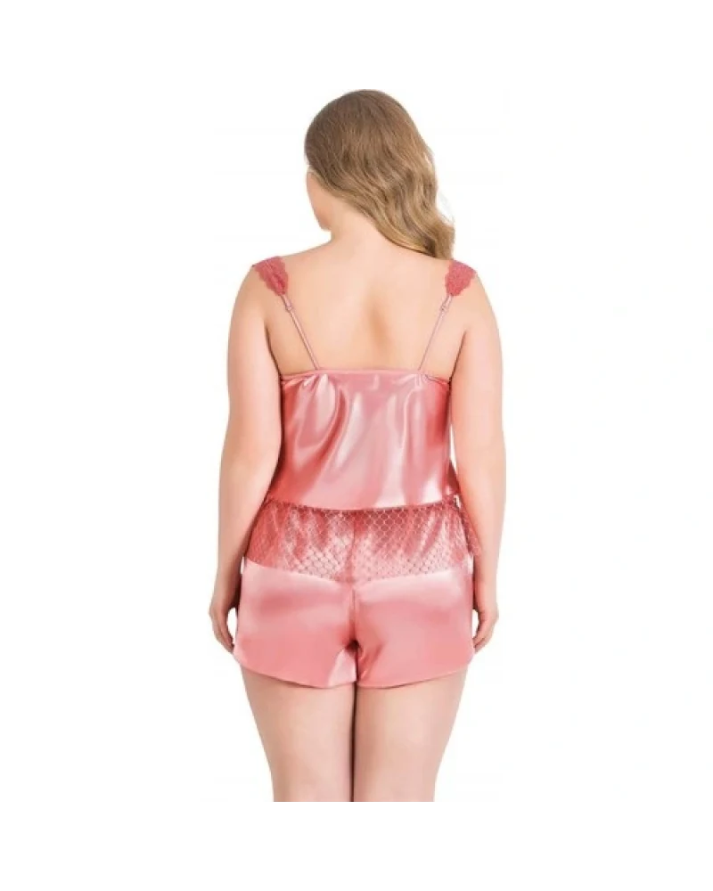 Arias Closet Büyük Beden Mercan Saten Babydoll Şort Takımı