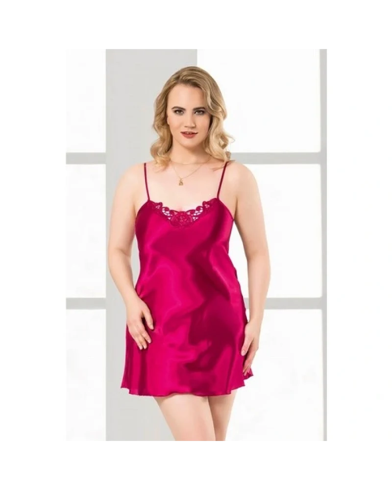 Arias Closet Büyük Beden Vişne Kısa Saten Gecelik