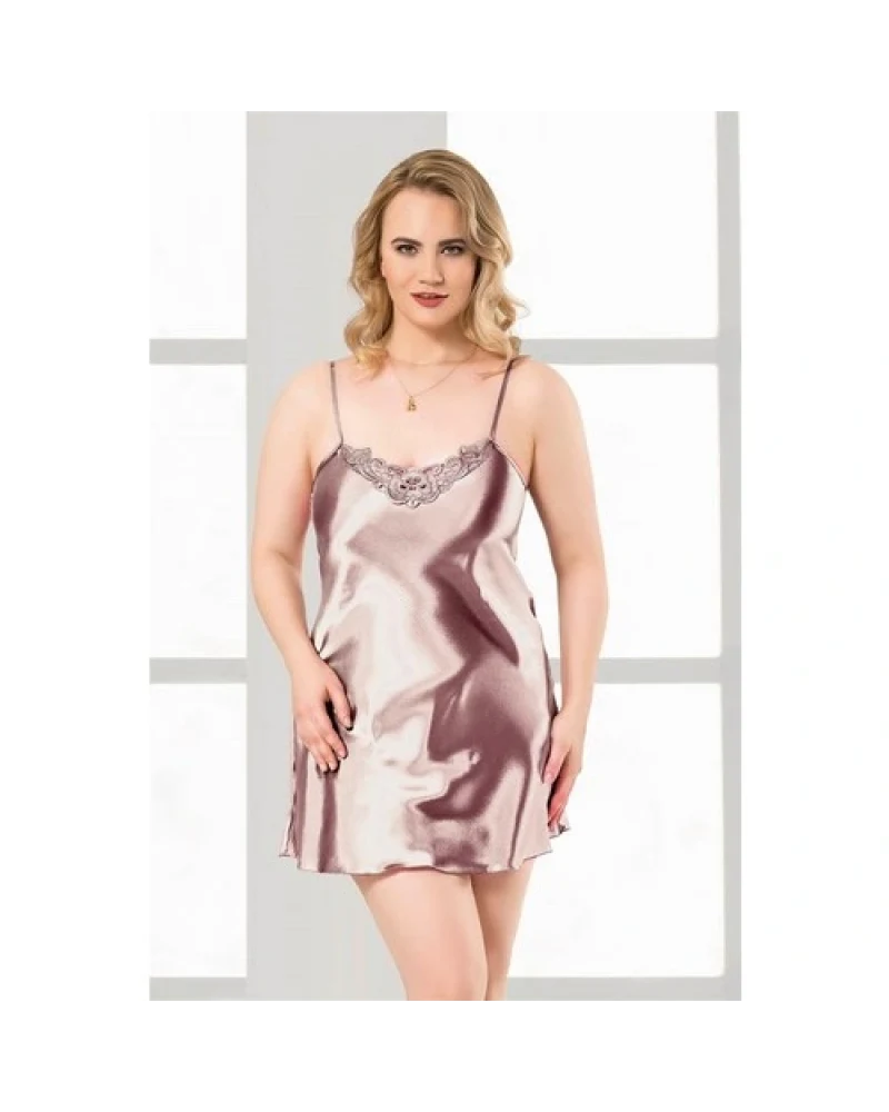 Arias Closet Büyük Beden Vizon Kısa Saten Gecelik