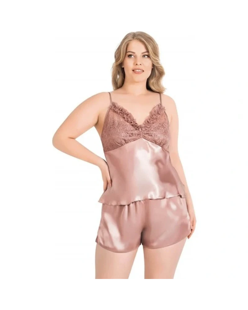 Arias Closet Büyük Beden Vizon Saten Babydoll Şort Takımı