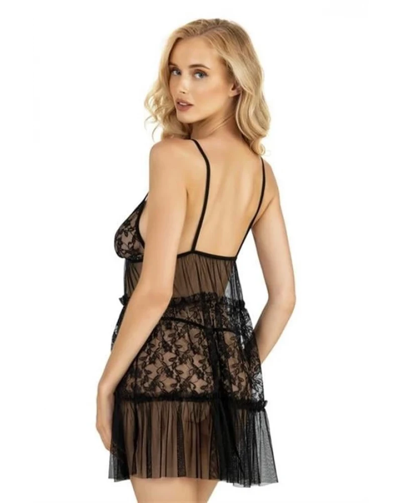 Arias Closet Dantel İşlemeli Siyah Kısa Tül Gecelik