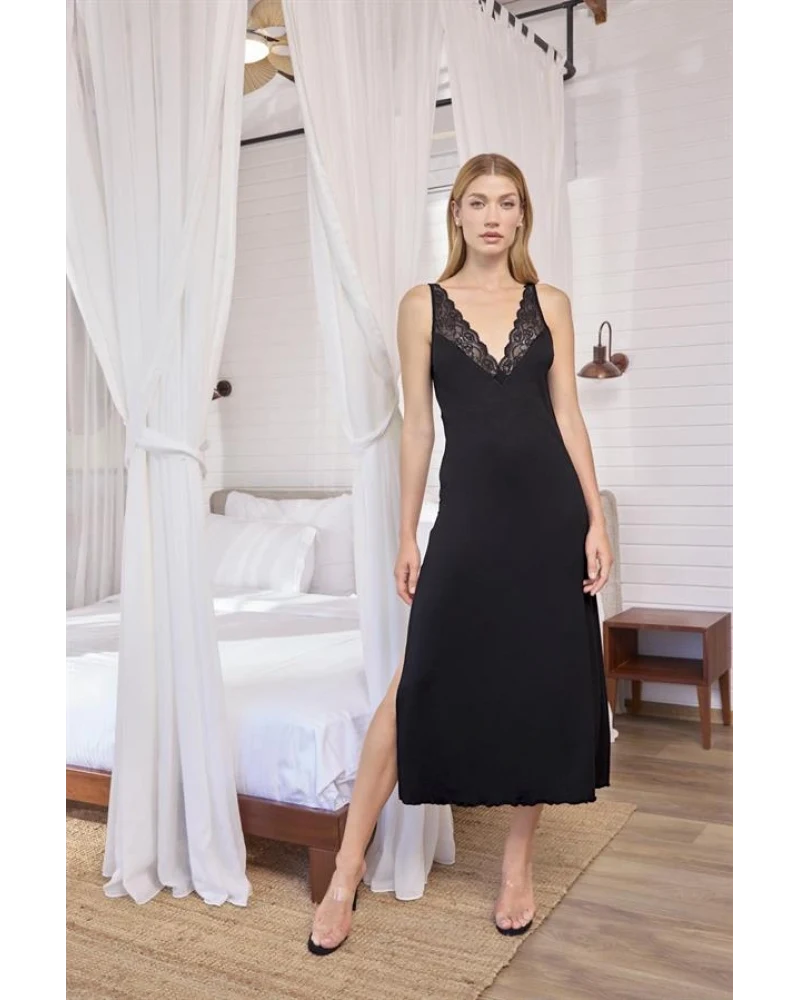 Arias Closet Dantelli Dekolteli ve Yırtmaçlı Gecelik