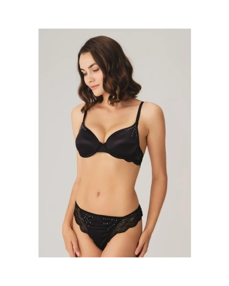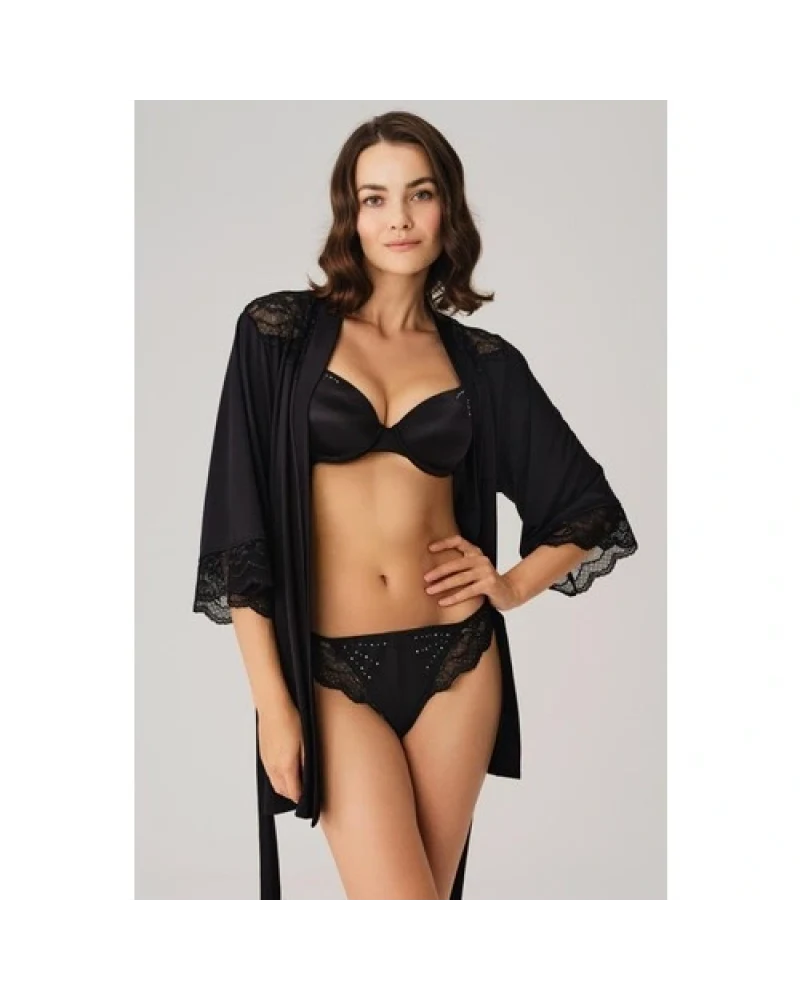 Arias Closet Dantelli Sabahlık Balenli Destekli Dolgulu Taşlı Sütyen ve String 3'lü Takım
