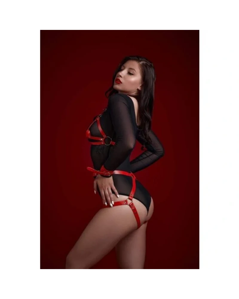 Arias Closet Fantezi Sütyen Külot Kelepçeli Kırmızı Harness Set