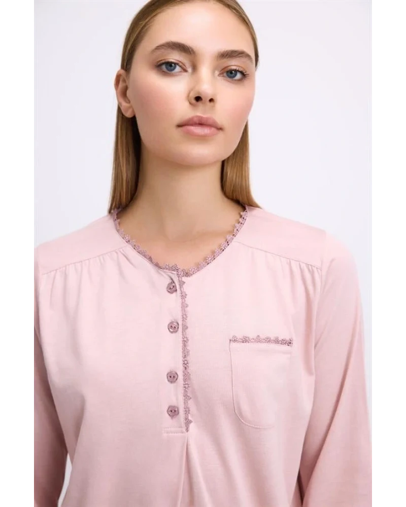 ? Modal Pamuklu Uzun Kollu Düğmeli 2'li Pijama Takımı ?