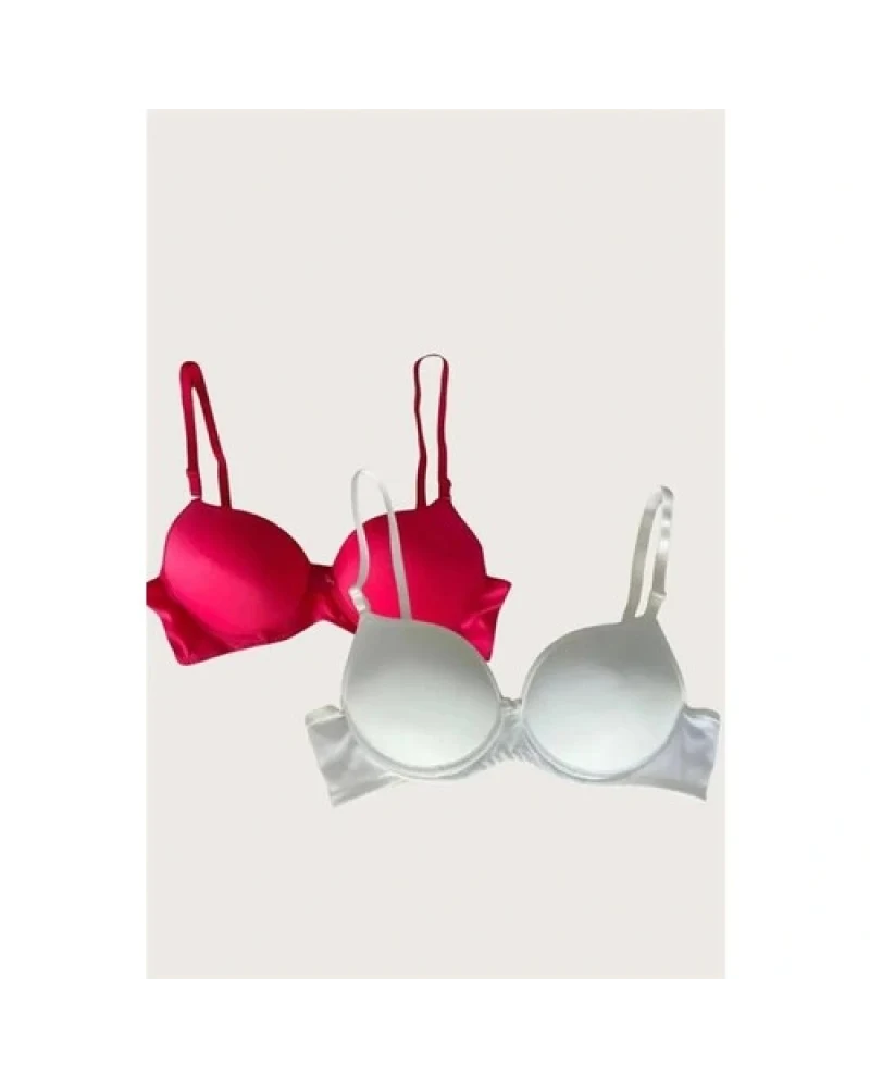 Arias Closet Kırmızı-Beyaz 2'li Mikro Kumaş Push Up Dolgulu Balenli Günlük Destekli Sütyen