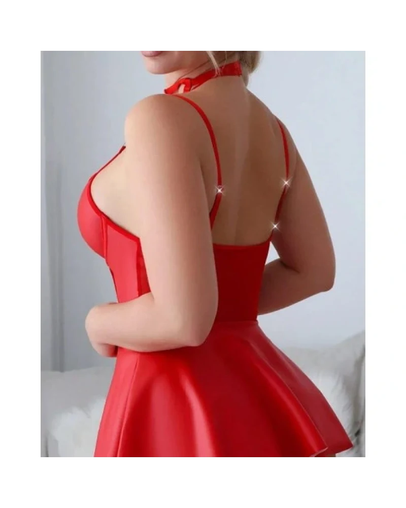 Arias Closet Kırmızı Fantezi Parlak Deri Şık Club Elbise