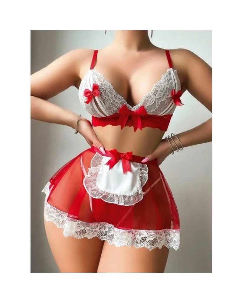Arias Closet Kırmızı Tül Etekli Fantezi Hizmetçi Kostümü