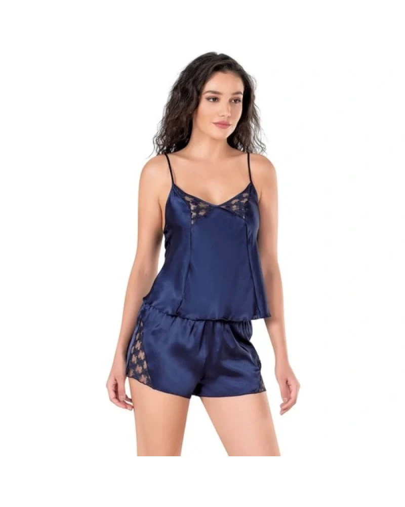 Arias Closet Lacivert Saten Babydoll Şort Takımı