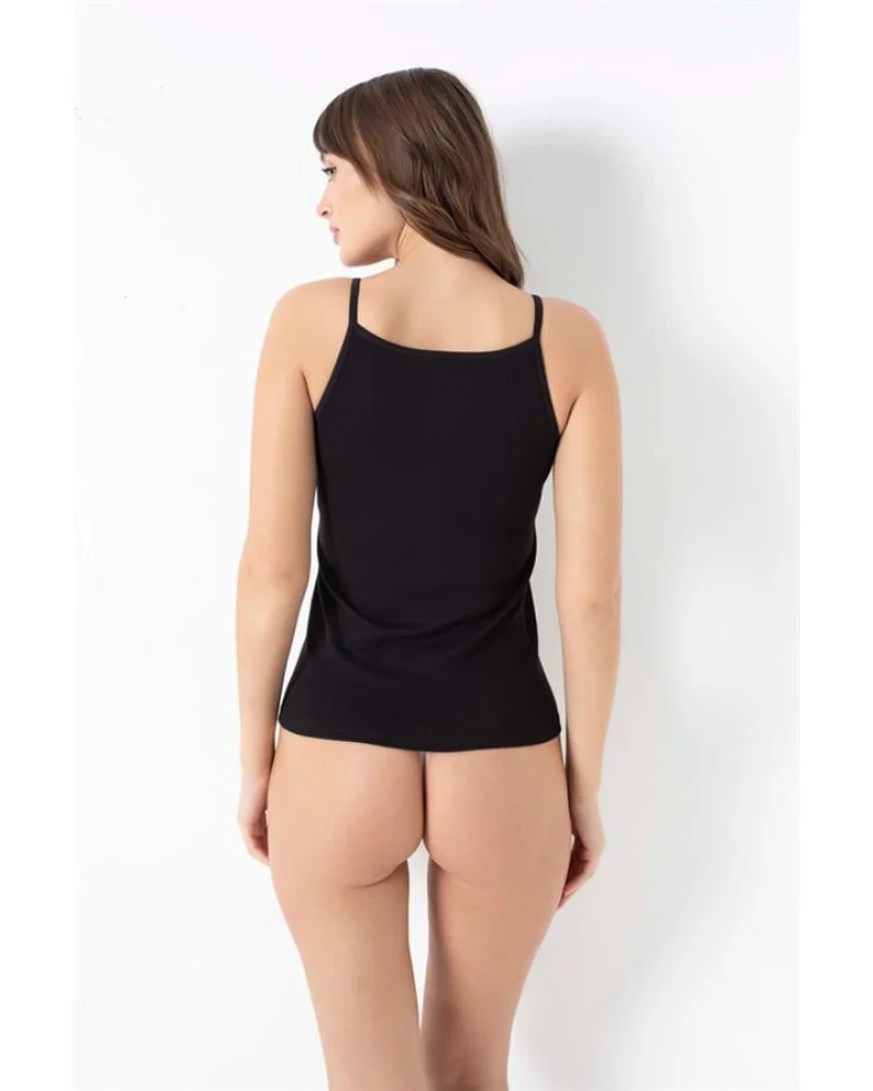? Likralı Pamuklu İp Askılı Siyah Atlet