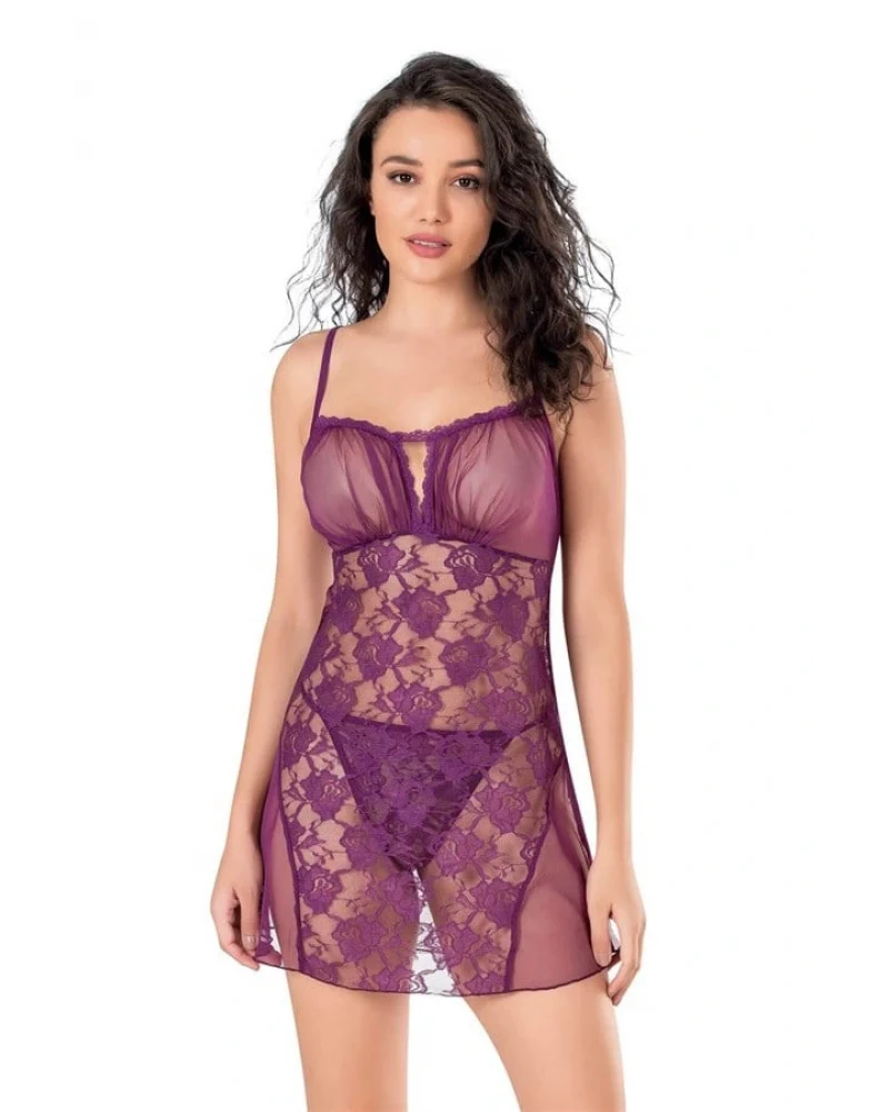 Aria's Closet Mor Kısa Tül Gecelik 4131