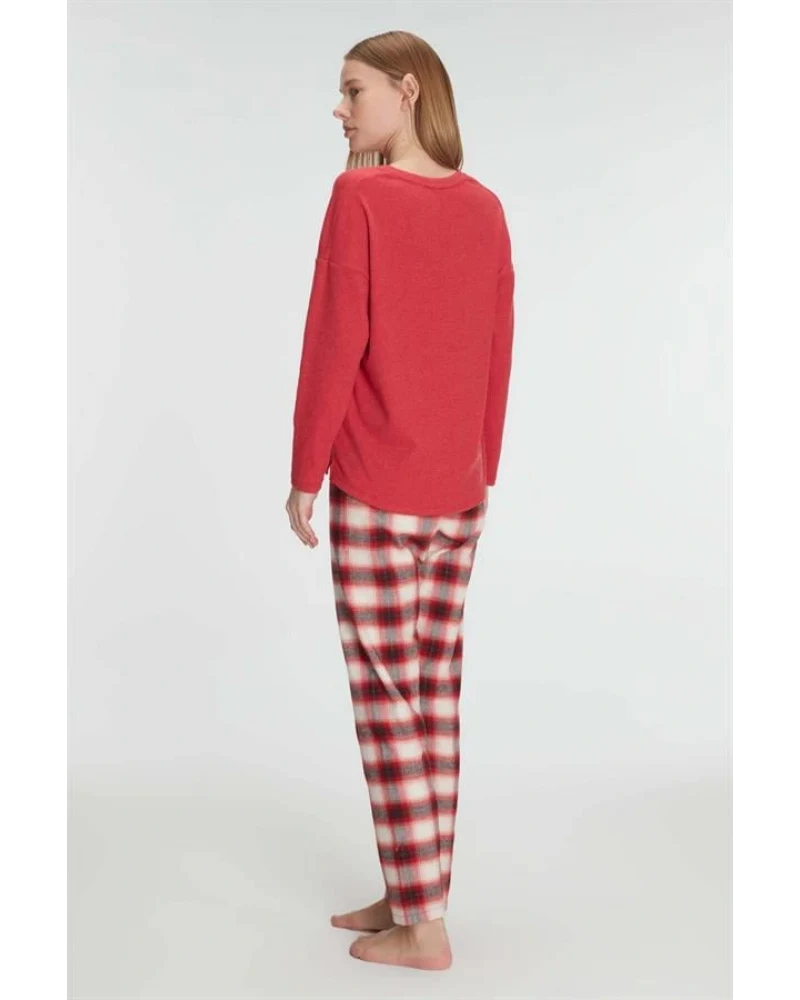 Arias Closet Pamuklu Kışlık Kare Desenli Uzun Kol Pijama Takımı