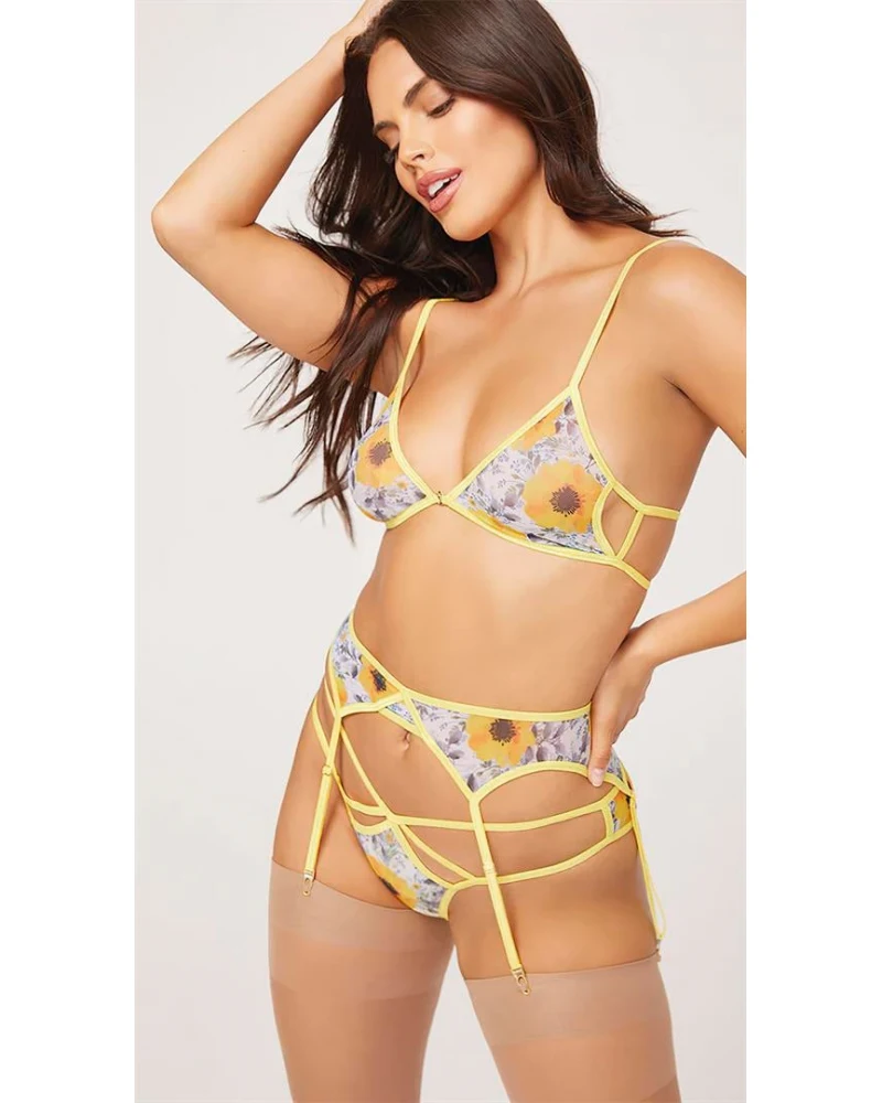 Arias Closet Sarı Çiçekli Jartiyer Takım