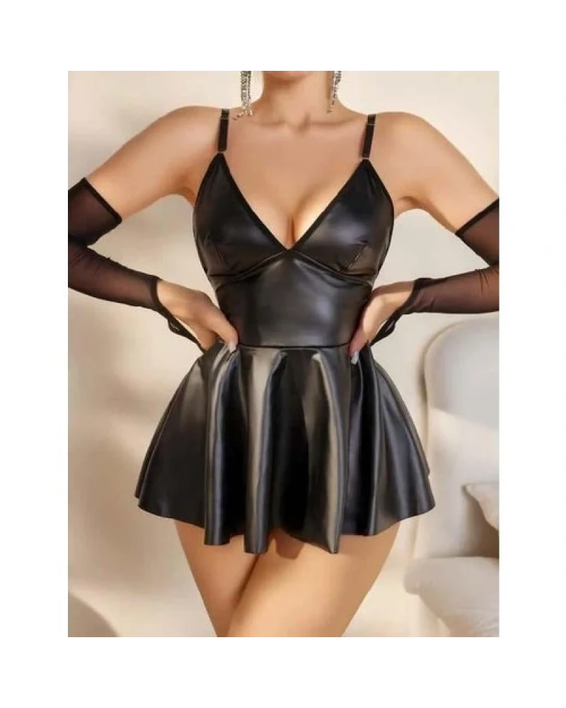 Arias Closet Siyah Etekli Fantezi Deri Elbise
