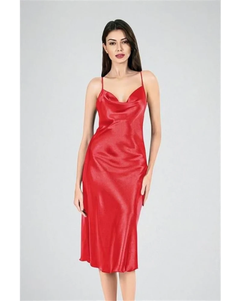 Aria's Closet Uzun Gecelik Degaje Kırmızı 7741