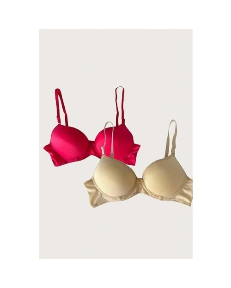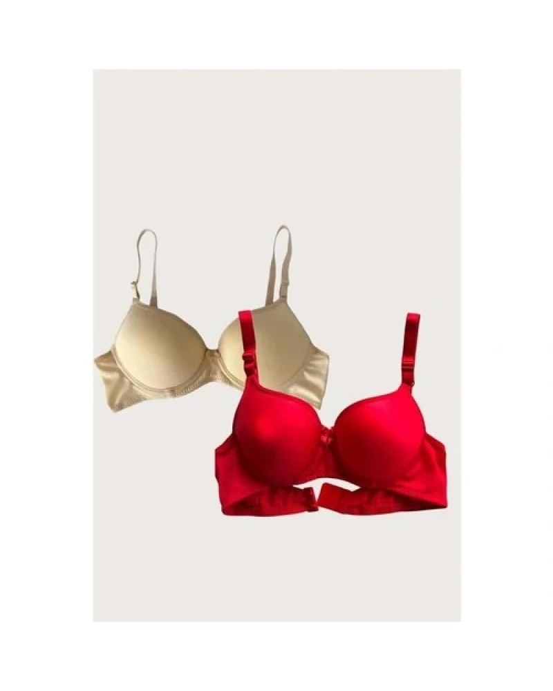 Arias Closetx Arias Closet Kırmızı-Ten 2'li Mikro Kumaş Içi Boş Balenli Günlük Desteksiz Sütyen