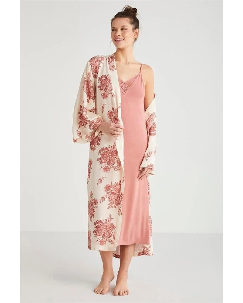 Catherine's %100 Viskon Çiçek Desen 2'li Sabahlık Gecelik Takımı