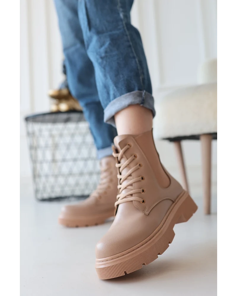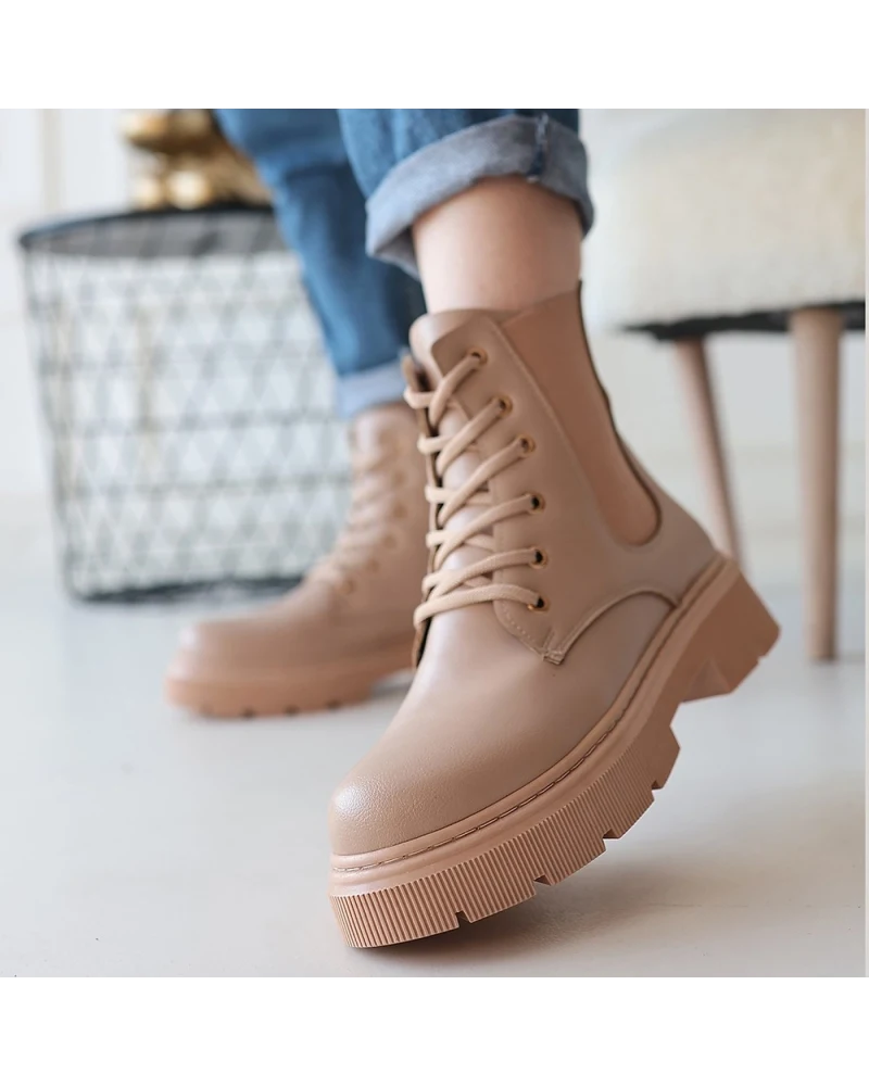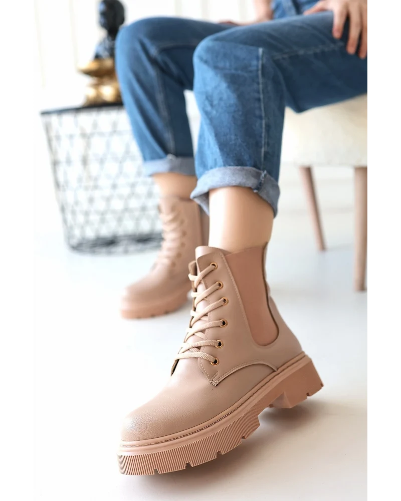 Detay : Topuklu Yandan Fermuarlı Lastikli Bağcıklı Bot