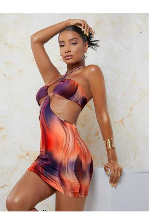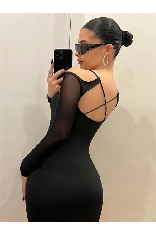 Arias Closet Siyah Boyundan Bağlamalı Sırt Dekolteli Mini Club Elbisesi
