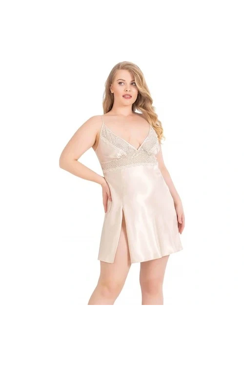 Arias Closet Büyük Beden Fildişi Kısa Saten Gecelik