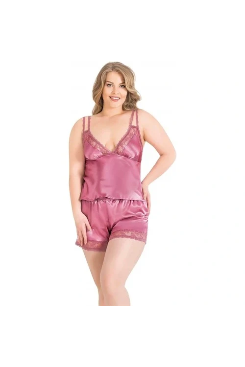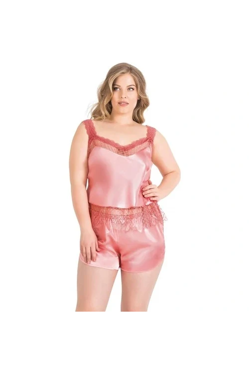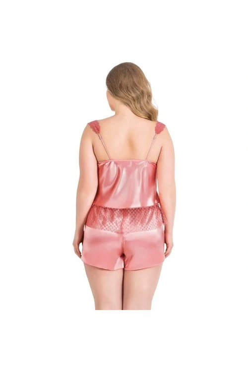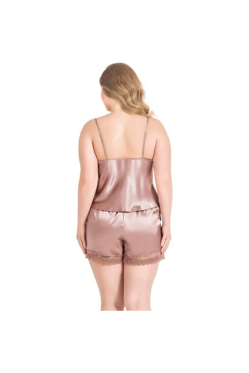Arias Closet Büyük Beden Gül Kurusu Saten Babydoll Şort Takımı