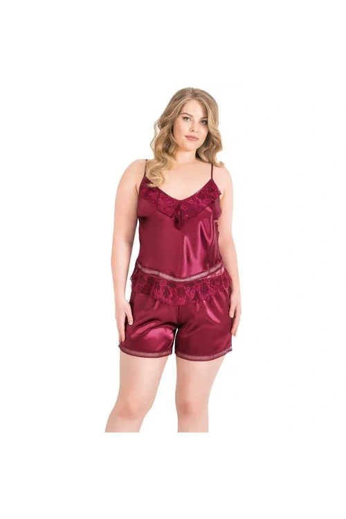 Arias Closet Büyük Beden Bordo Saten Babydoll Şort Takımı