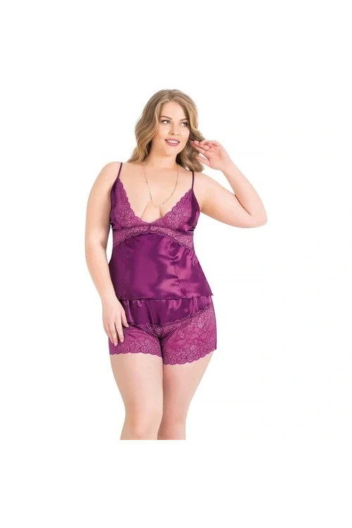 Arias Closet Büyük Beden Mor Saten Babydoll Şort Takımı