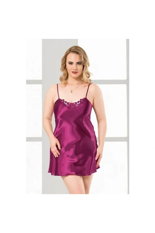 Arias Closet Büyük Beden Mor Kısa Saten Gecelik