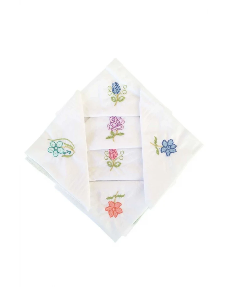 Hediyelik İşlemeli Bayan Mendili 6 Adet 28x28 cm %100 Pamuk