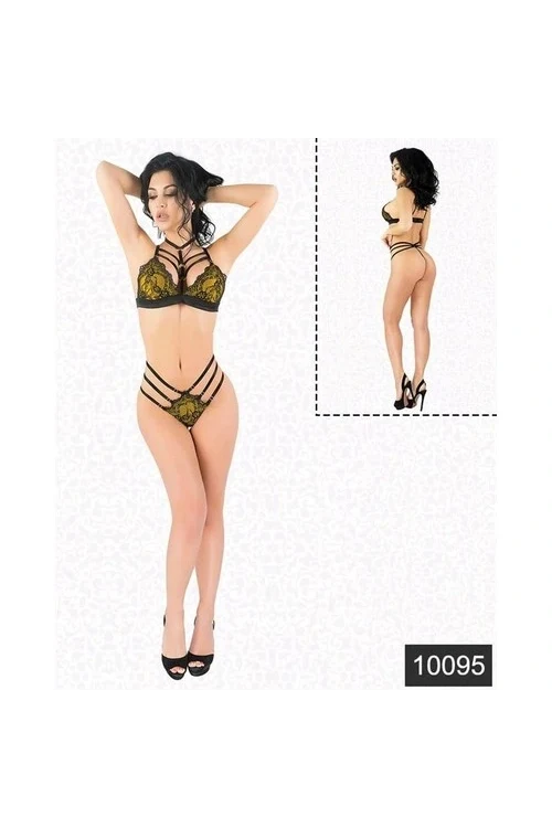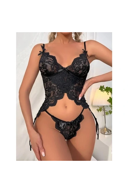 Arias Closet Özel Tasarım Arkadan Bağcıklı Fantezi Siyah Jartiyer Takım