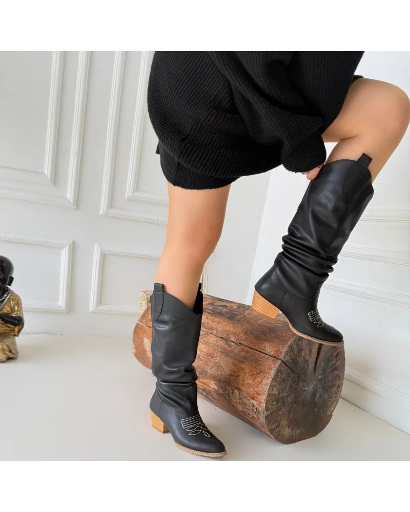 Detay: Topuklu Diz Altı Koboy Körüklü Çizme
