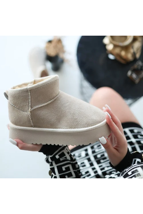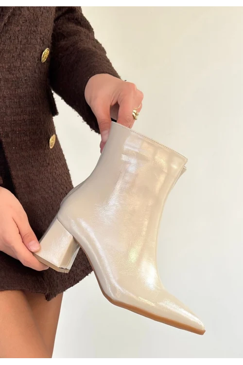 Ninle Bej Cilt Topuklu Bot