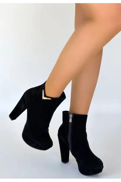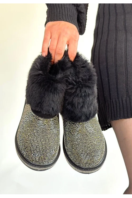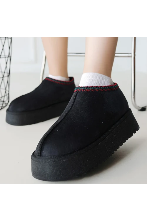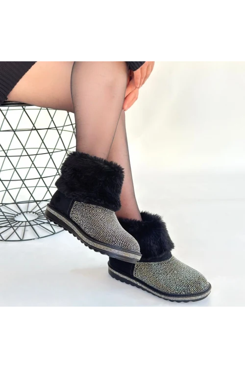Linka Siyah Süet Siyah Boncuk İşlemeli Bot