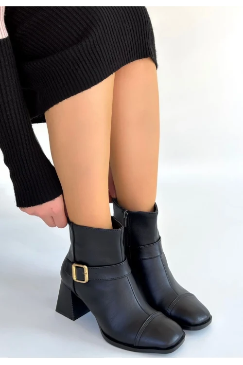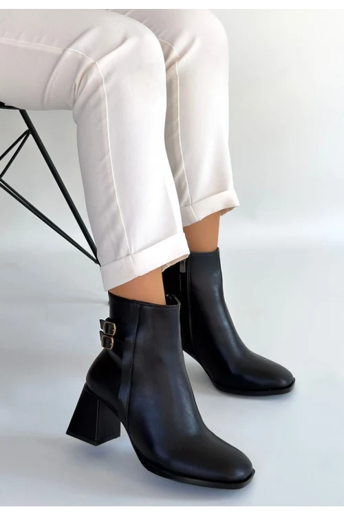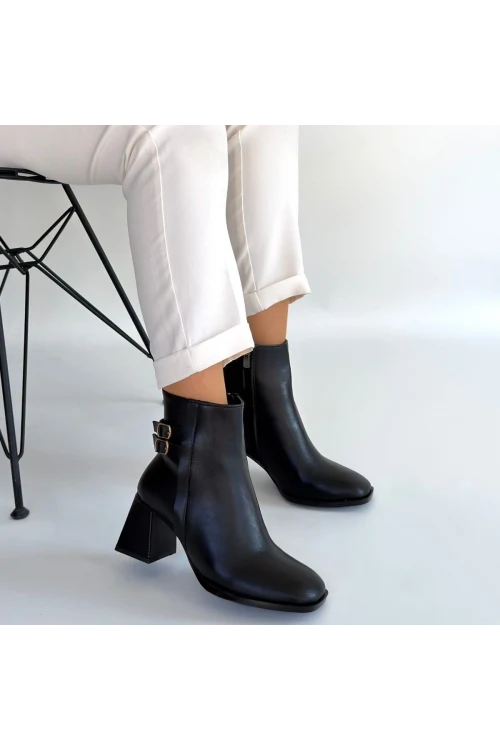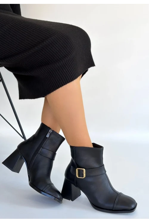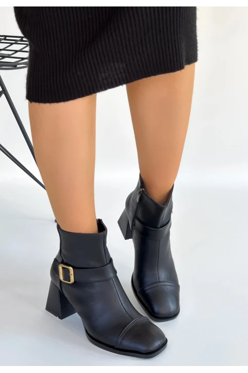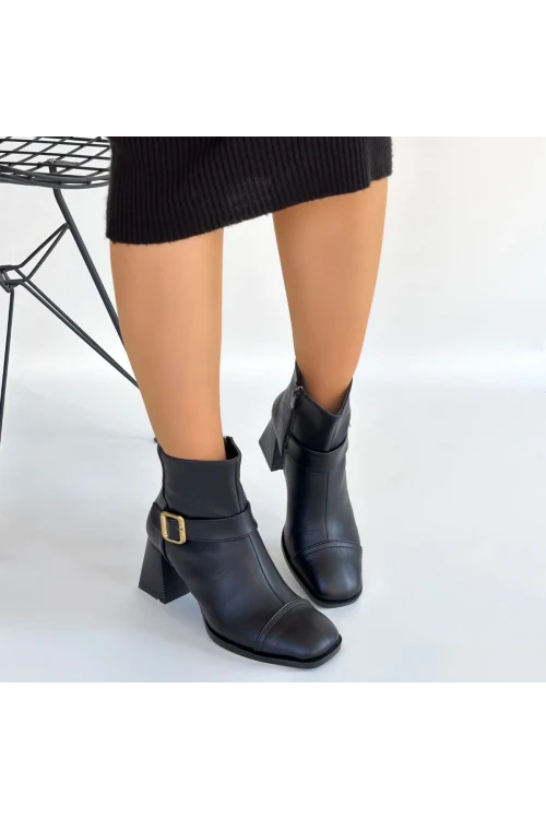 Jones Siyah Cilt Bağcıklı Topuklu Bot