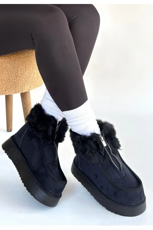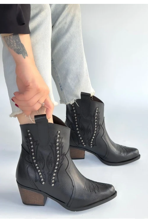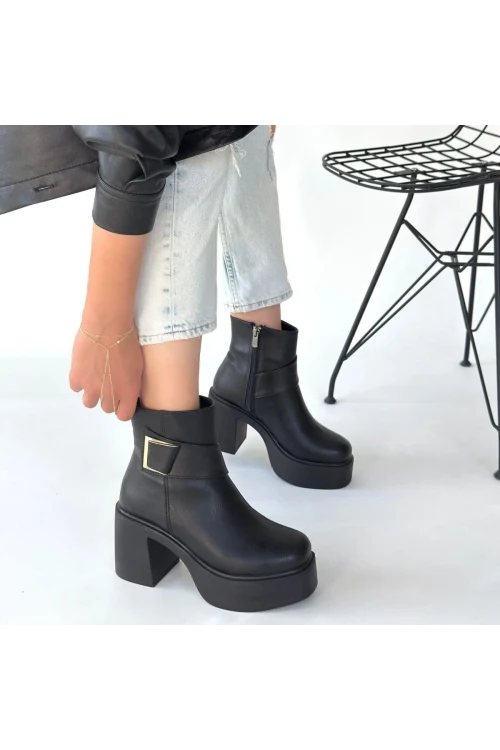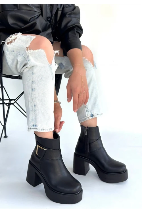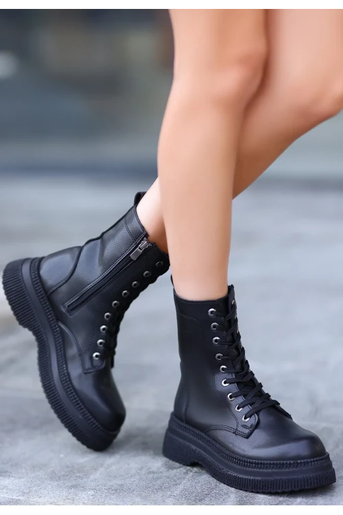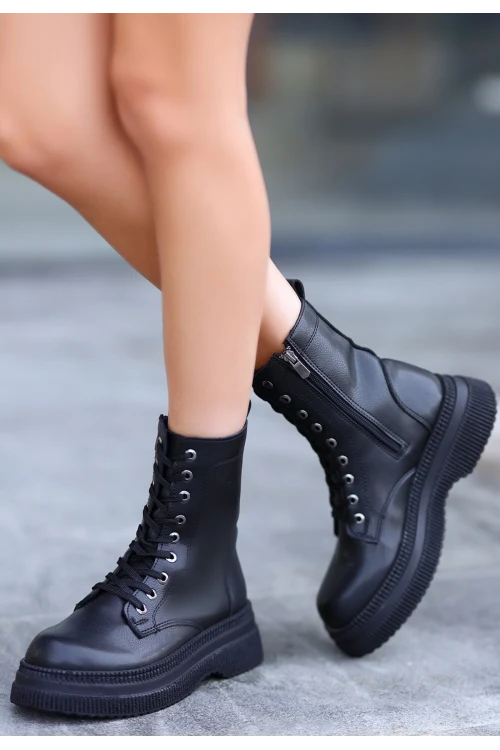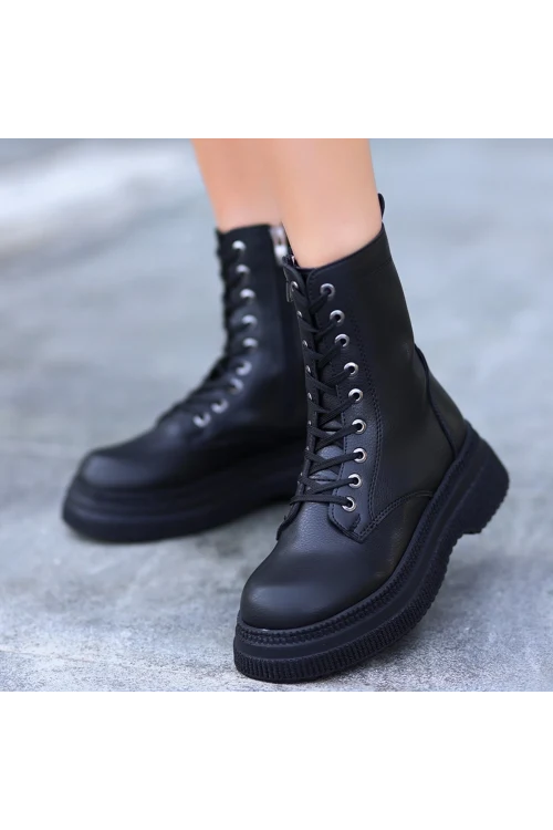 Linma Siyah Nubuk Bağcıklı Topuklu Bot